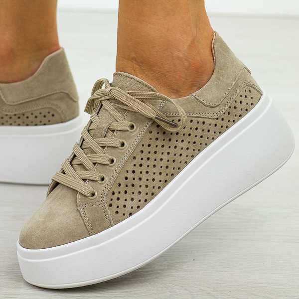 Beżowe skórzaneażurowe półbuty damskie na platformie