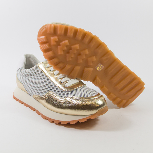 Sneakersy damskie Złote skórzane półbuty ażurowe na platformie