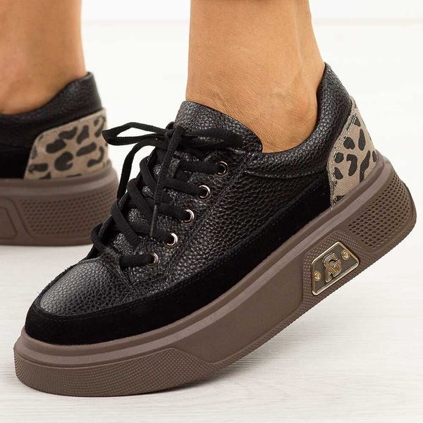 Sneakersy damskie Złote skórzane półbuty ażurowe na platformie