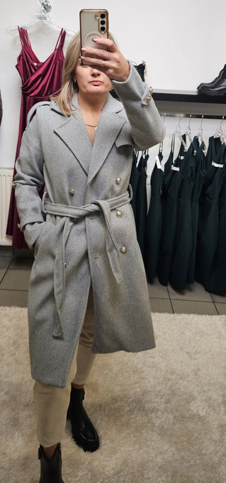 Klasyczne Wiązany Płaszcz Damski Coco - szary