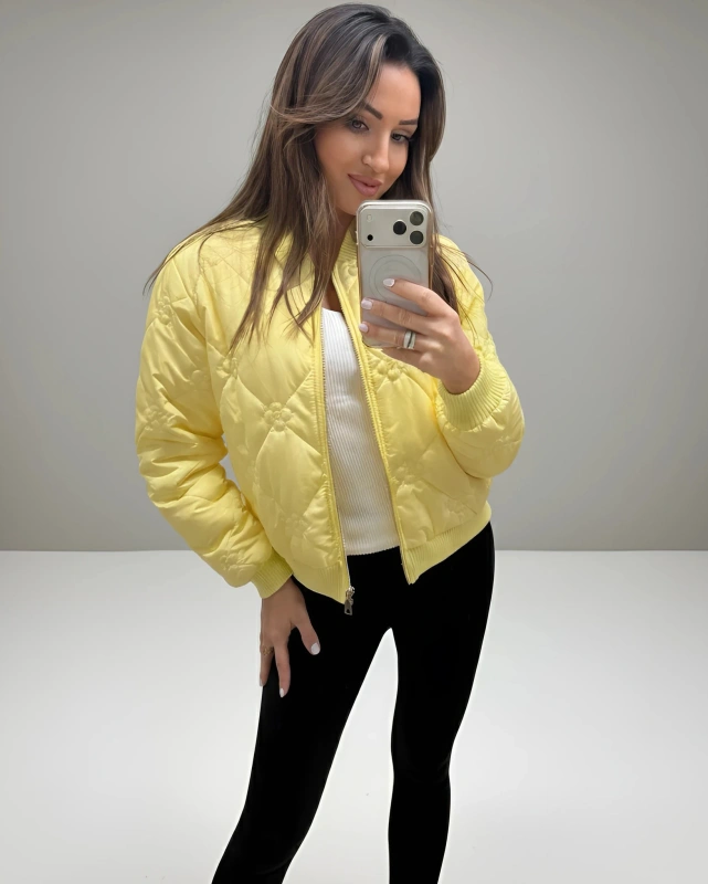 Damska pikowana kurtka bomberka żółta wiosenna przejściowa nylon zamek