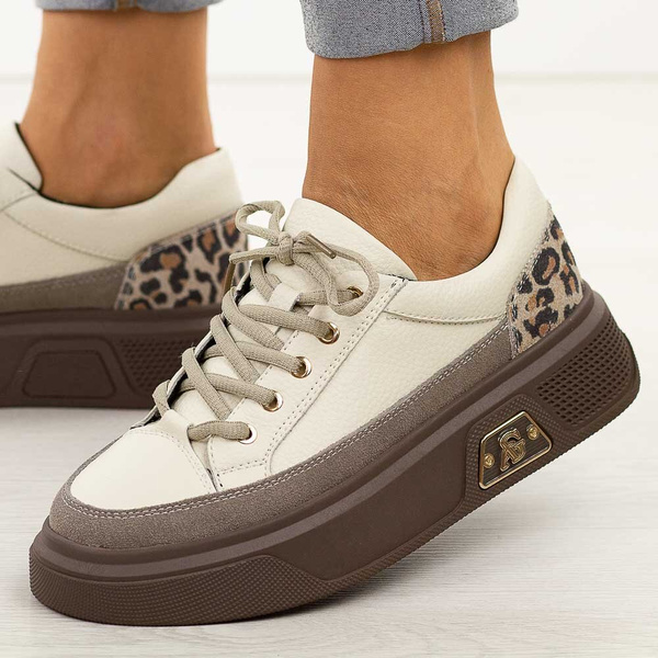 Beżowe skórzaneażurowe półbuty damskie na platformie
