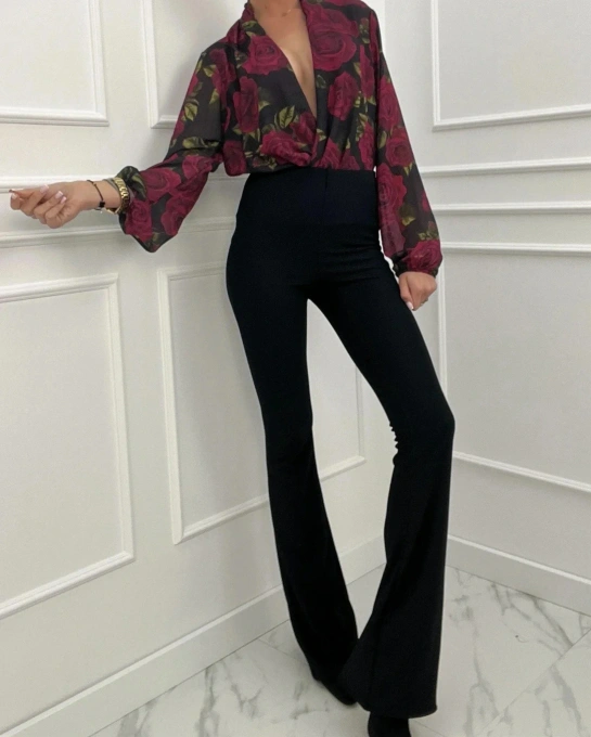 Spodnie Damskie Dzwony Czarne Modelujące Sylwetkę Wysoki Stan Elastyczne