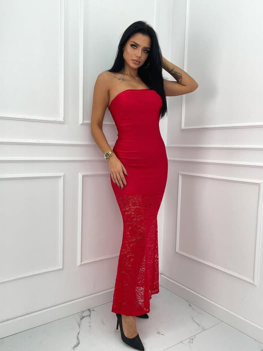 Elegancka koronkowa Maxi Sukienka dopasowana Midnight Lace czerwony