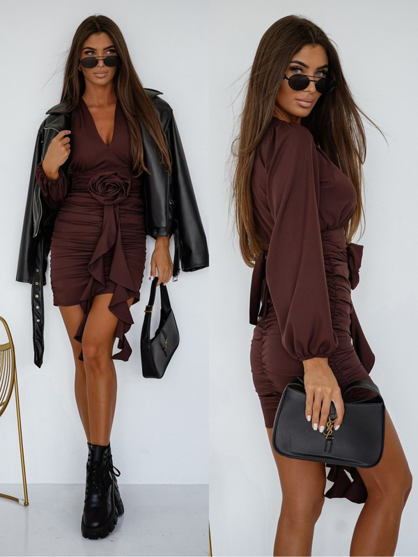 Elegancka Sukienka FLOWERS z długim rękawem bordowy