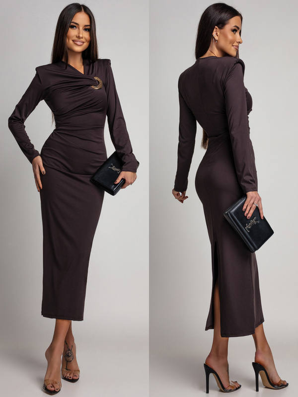 ELEGANCKA DOPASOWANA SUKIENKA MAXI Ashley czekoladowa
