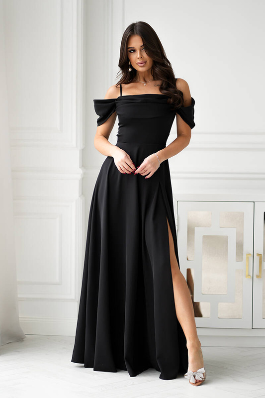 SUKIENKA MAXI Z OPADAJĄCYMI RAMIĄCZKAMI I ROZCIĘCIEM czarny