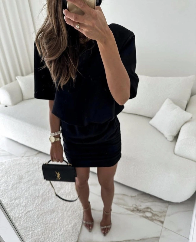BAWEŁNIANA Drapowana SUKIENKA Taylor czarny