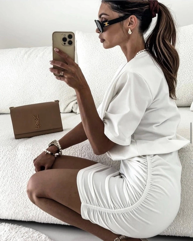 BAWEŁNIANA Drapowana SUKIENKA Taylor biały