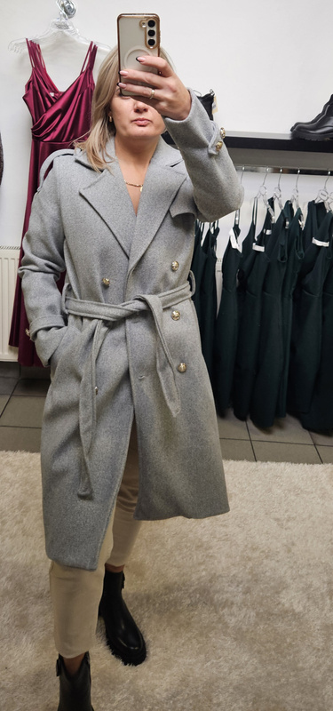 ( ilość produktów: 6 )Klasyczne Wiązany Płaszcz Damski Coco - szary