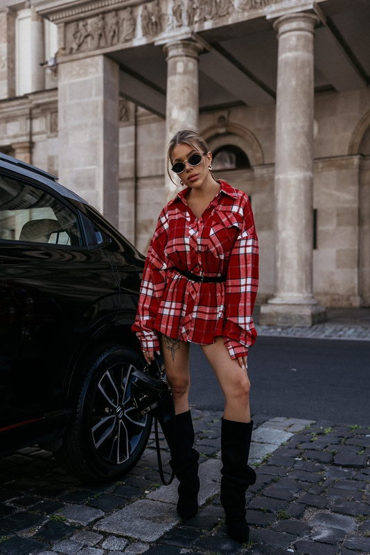 Sukienka Rosarlia z kołnierzykiem czarno-czerwona