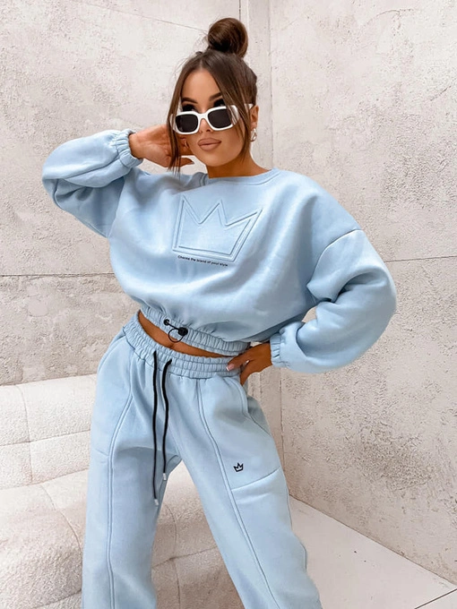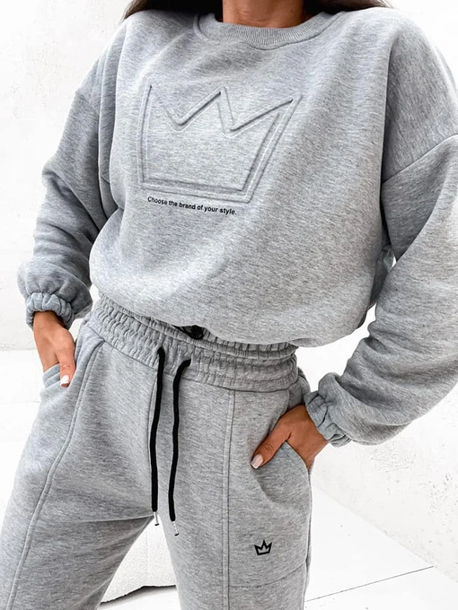 Komplet dresowy bluza + spodnie z naszywką korony -jagodowy