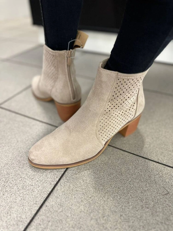 Botki Płaskie na słupku z Ażurowym Wzorem- beżowe