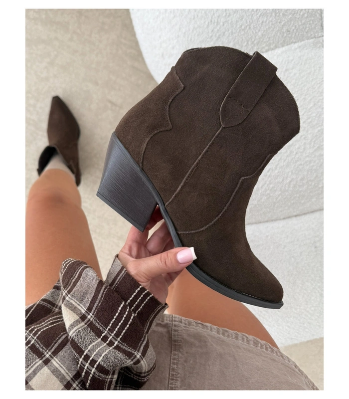 Botki Kowbojki damskie ze skóry naturalnej czekoladowe