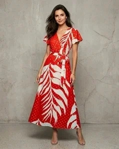 Ta sukienka midi została stworzona dla kobiet, które cenią połączenie elegancji z wygodą. Idealnie sprawdzi się zarówno dla młodych dziewczyn szukających letniego hitu, jak i dojrzałych pań pragnących podkreślić swoją kobiecość. Wiązanie w talii pozwala dopasować fason do różnych typów sylwetki - od szczupłych po pełniejsze kształty.